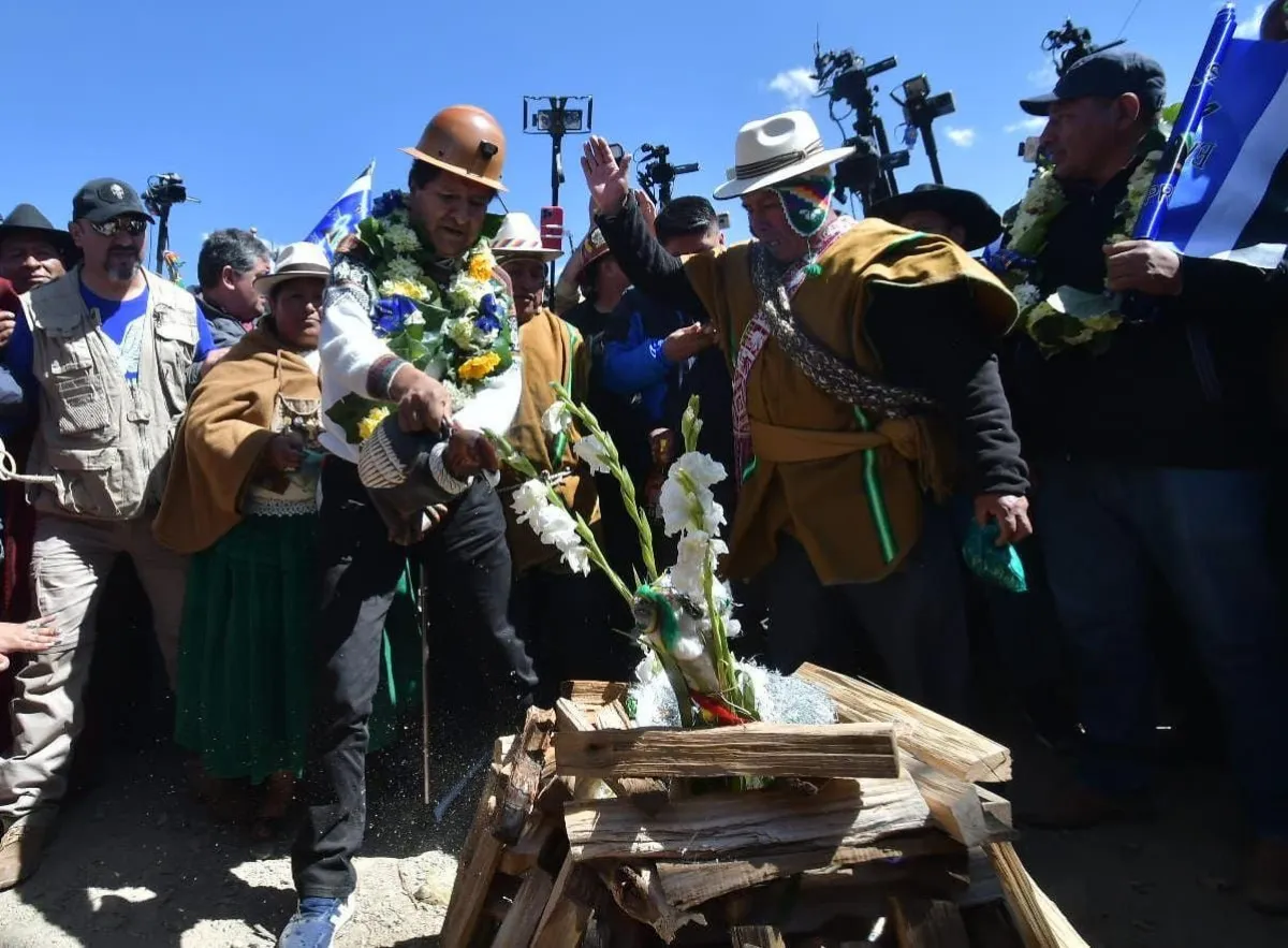 Antes de su discurso, Morales participó de una mesa de ofrenda. Foto: APG
