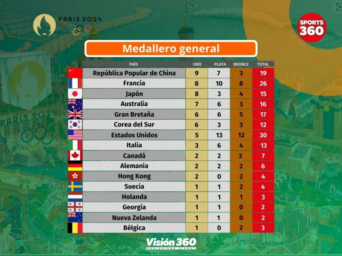 China ha arrebatado el liderato a Japón y se ha situado en cabeza del medallero de los Juegos Olímpicos de París 2024 tras la disputa de la jornada de este miércoles, con un total de nueve oros, siete platas y tres bronces.