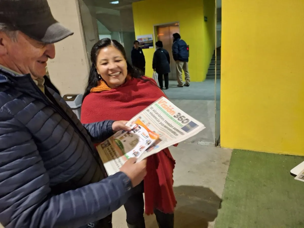 En el puesto de Visión 360 se regalaron los números de la edición impresa.  FOTO: Jorge Soruco/ Visión 360