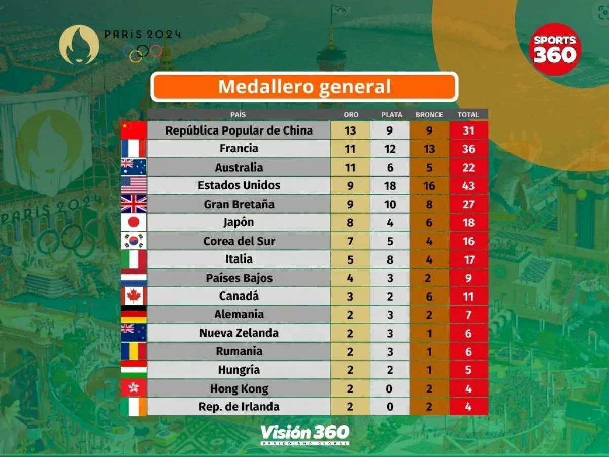 El representativo de China volvió a erigirse como la mejor en el medallero general, tras la jornada de este viernes 2 de agosto.