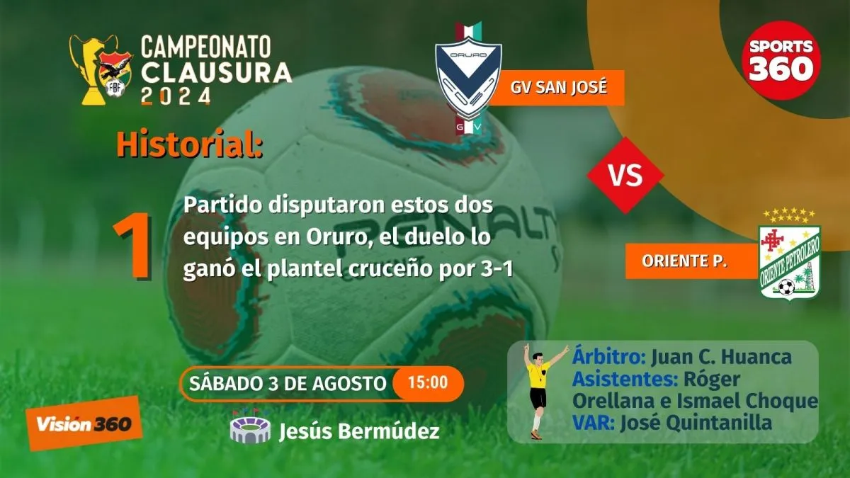 Oriente Petrolero ocupa la segunda posición de la tabla de posiciones con 15 unidades, mientras el GV San José está en la mitad con 10 unidades,  mostrando un fútbol ofensivo, tanto de local como de visitante con el DT argentino Rolando Carlén.