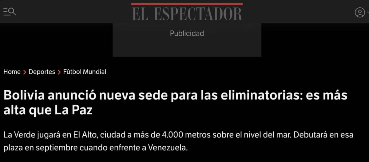 “Bolivia anunció nueva sede para las eliminatorias: es más alta que La Paz”, tituló.