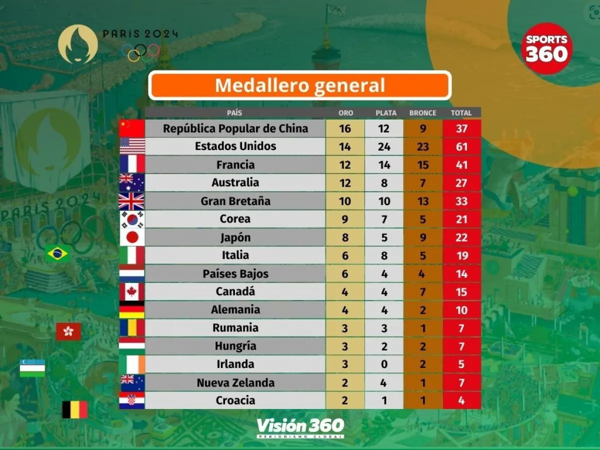 El equipo de Estados Unidos alcanzó los 14 oros, quedó a dos de China, y se colocó en el segundo lugar del podio de los Juegos de París, por delante de la anfitriona Francia.