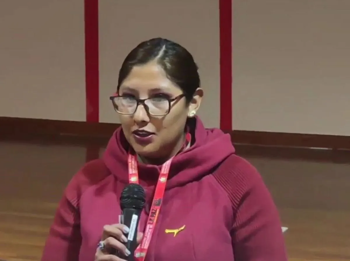 Carmen Callizaya en la conferencia de prensa de este lunes en el estadio Hernando Siles. Foto: Captura video.
