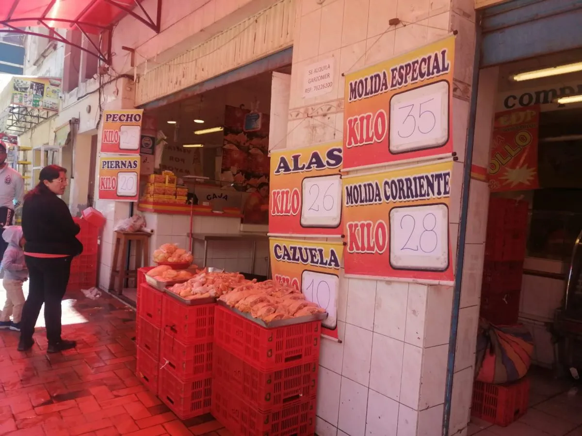 “A 18,50 (bolivianos) el kilo de pollo, el yungueño a 19”, afirmó una vendedora en su puesto del mercado Rodriguez. En el puesto vecino, otra caserita ofertó tener un precio menor, sin embargo este era de 18 bolivianos el kilo de pollo cruceño y a 18,50 el yungueño. Una rebaja de apenas 50 centavos.