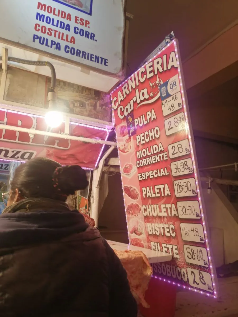 “En las agencias está algo más barato: 17,50 bolivianos el kilo. Mejor irse ahí”, comenta Alfredo, un padre de familia que camina de puesto en puesto en busca de los mejores precios.