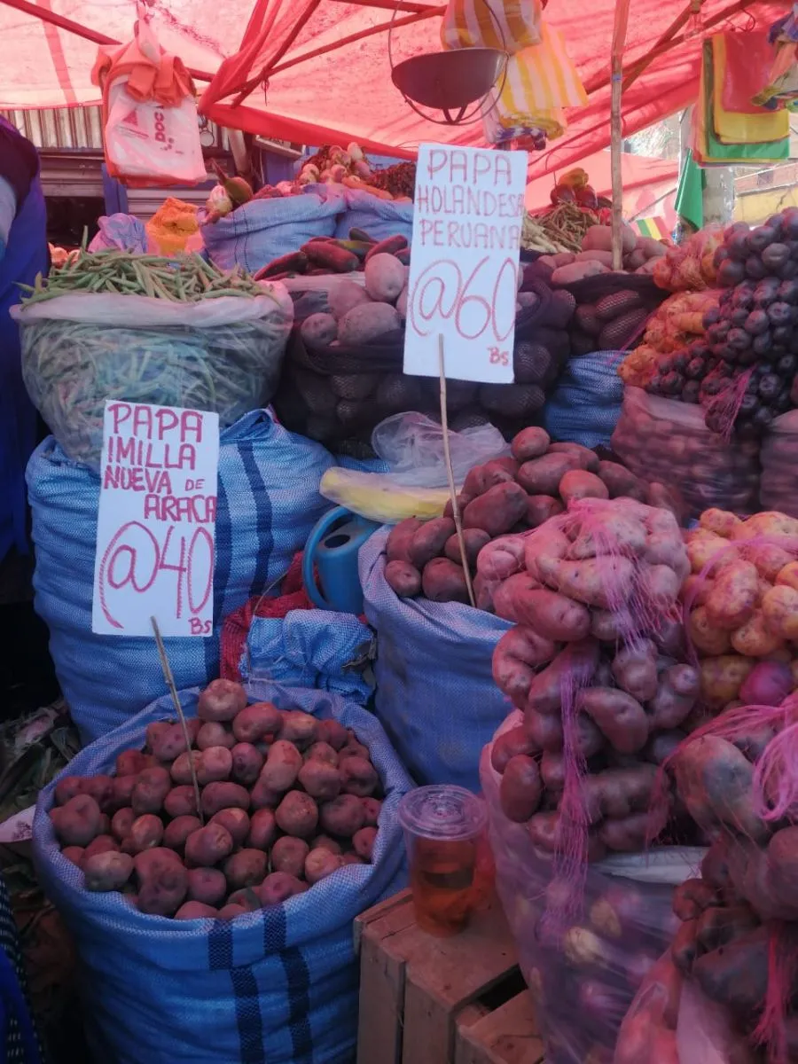 Al preguntar por una papa de mejor tamaño y contextura señalan que la arroba está a 50 bolivianos. “Eso por acabar, porque es lo que me queda de la semana pasada. Esta misma papa está a 60 y 70 bolivianos”.