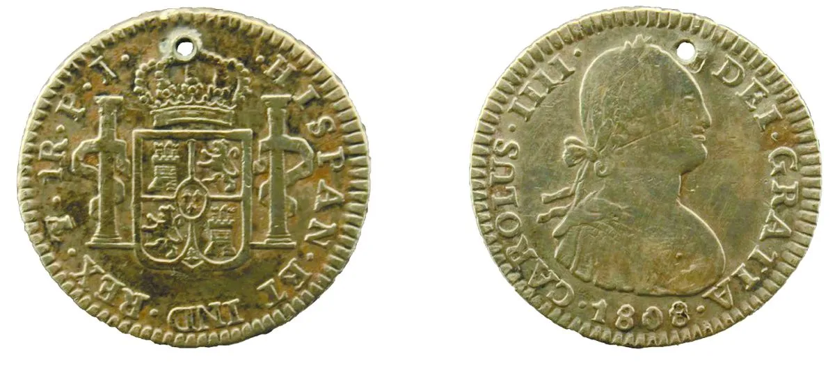 Moneda de 1808 con la efigie del rey Carlos IV.