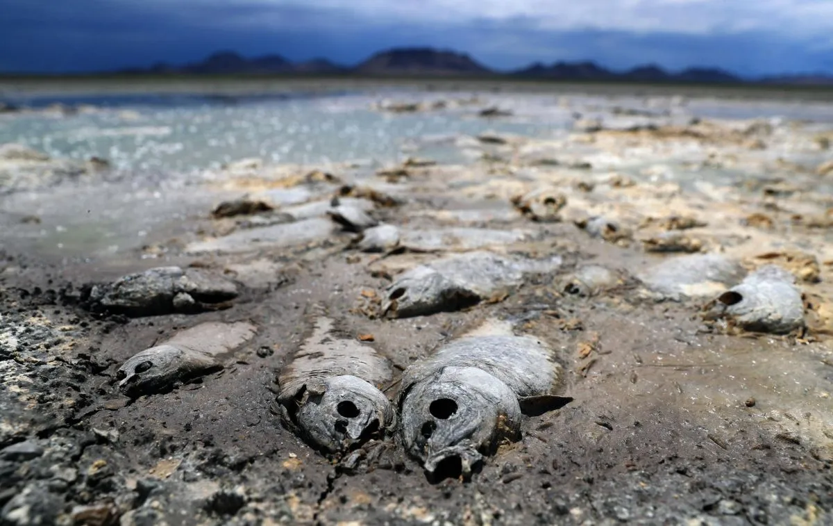 Foto del 12 de agosto de 2024 de peces muertos debido a la sequía en la laguna de Encinillas, en el municipio de Nuevo Casas Grandes, en el estado de Chihuahua (México). Foto: EFE