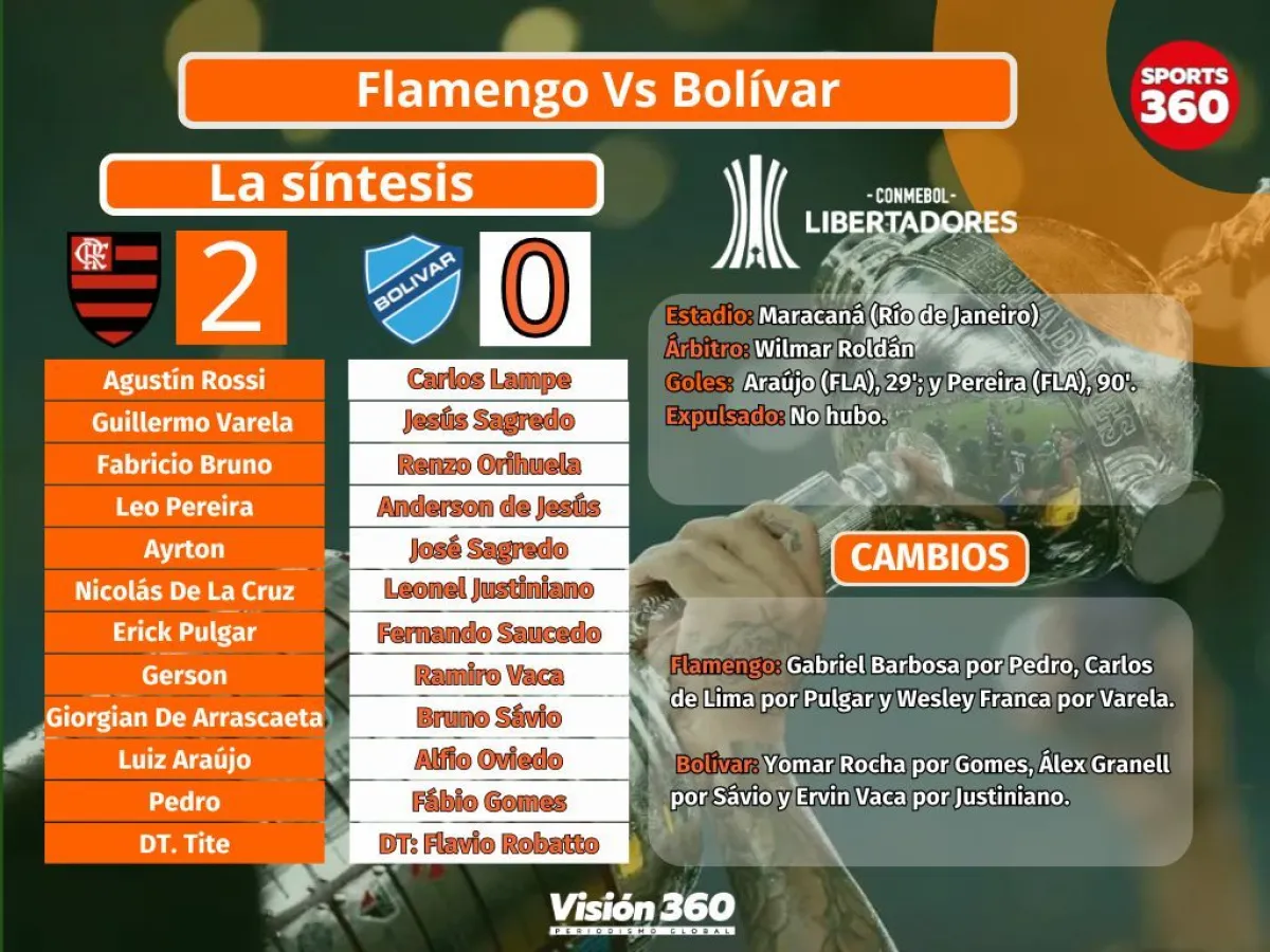 Bolívar consiguió un gran resultado en el estadio de Maracaná de Río de Janeiro al perder este jueves por 2-0 con Flamengo en la ida de los octavos de final de la Copa Libertadores de América y tiene todo a su favor para avanzar a la ronda de cuartos con la revancha que se jugará el jueves 22 en el Hernando Siles.