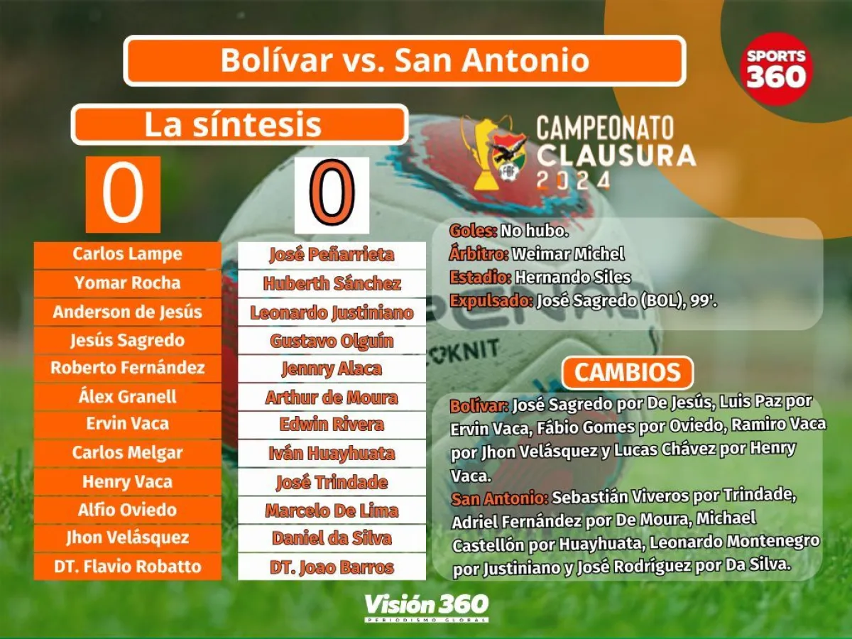 Bolívar iguala con San Antonio y pierde la gran chance de alejarse más en la cima del certamen
