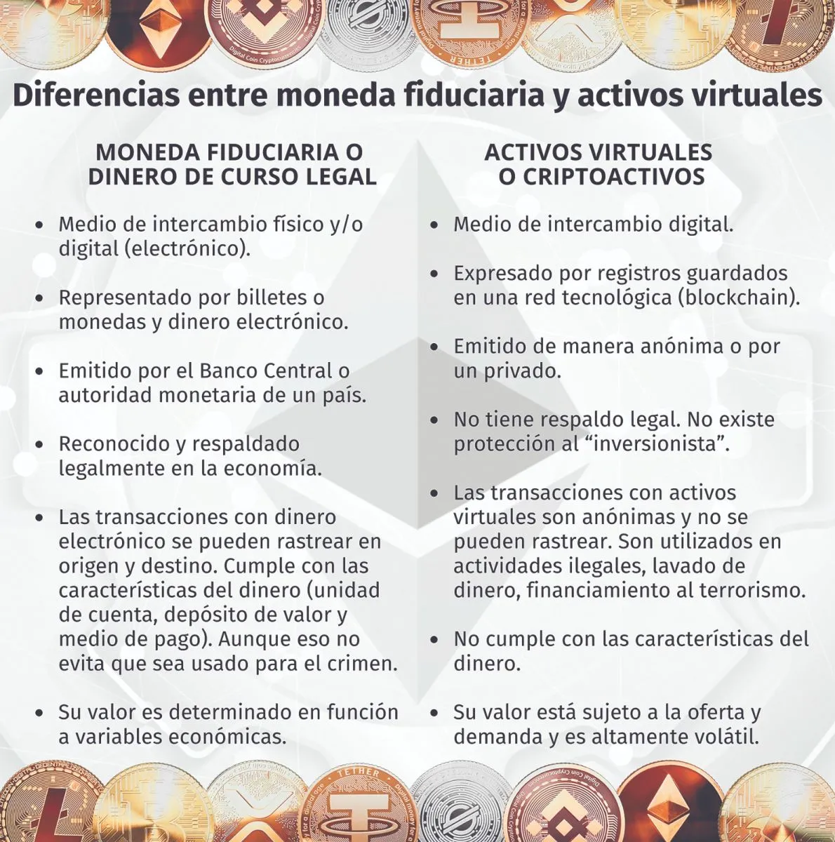 Por lo tanto, el activo virtual no es una moneda de curso legal, no es efectivo y no existe obligación, por parte de la población, para recibirlo como medio de pago; por lo que los riesgos inherentes a su uso y comercialización  serán asumidos por los usuarios de dichos activos.