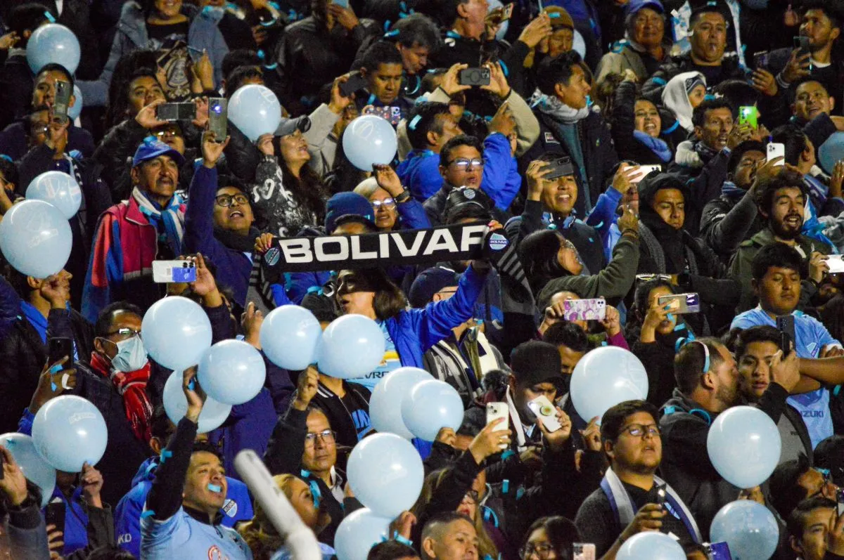 Hinchas de Bolívar alentando al equipo desde las tribunas del Hernando Siles. Foto: Alejandro Apaza.