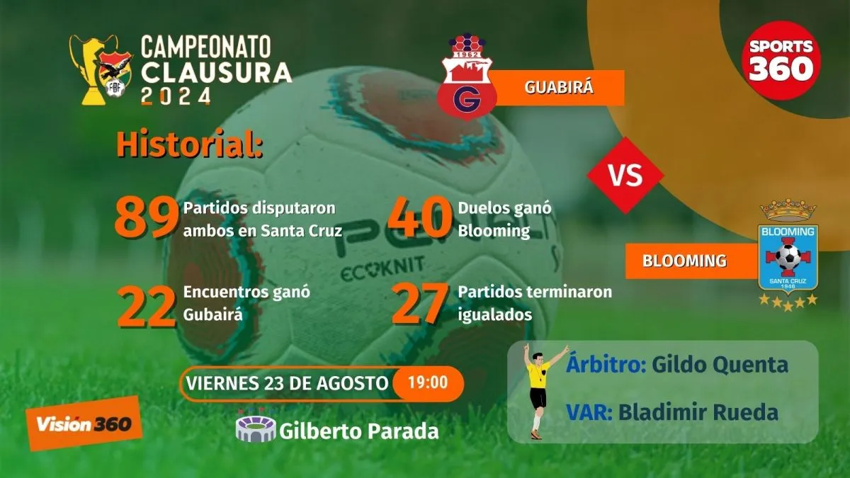 Guabirá, que ha perdido sus últimos tres partidos, y Blooming, que pelea en lo alto de la tabla, inauguran este viernes la decimotercera jornada del torneo Clausura, la última antes de que el torneo ingrese en un nuevo paréntesis por la fecha FIFA de septiembre.