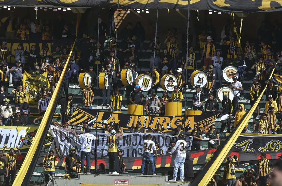 Integrantes de la Ultra Sur 34, una de las barras organizadas del club, que el domingo asistieron al Siles en un número reducido. Foto: APG