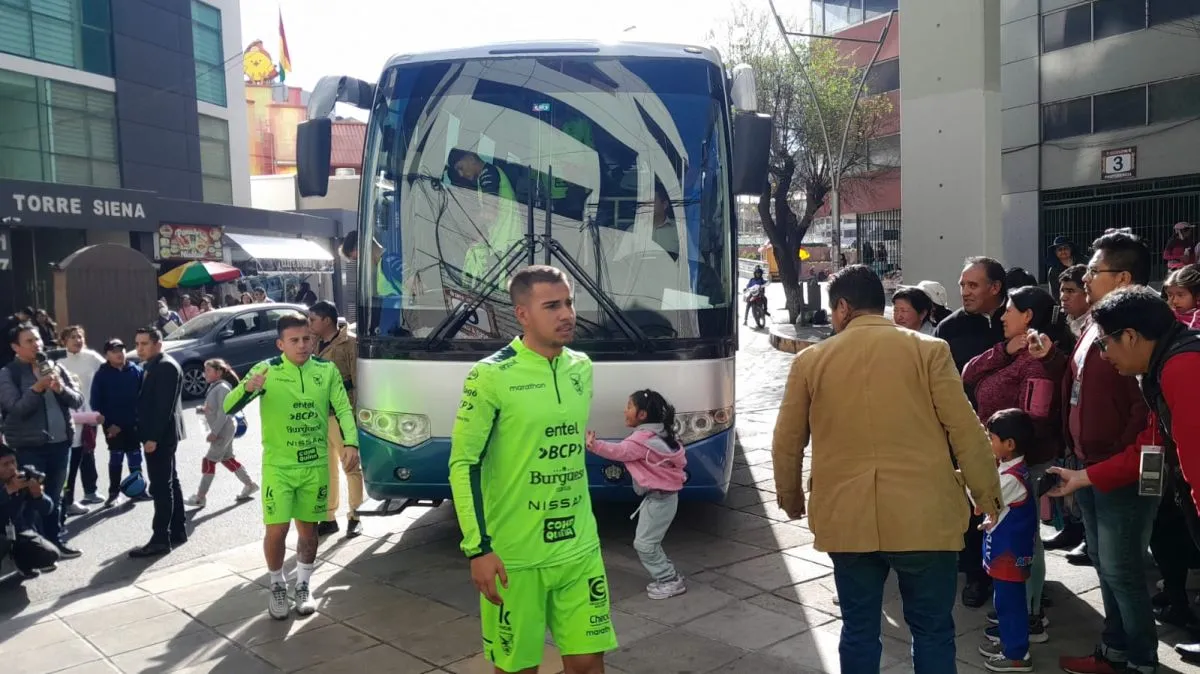 Los jugadores de la selección en su arribo al estadio Hernando Siles. Foto: Sports 360.