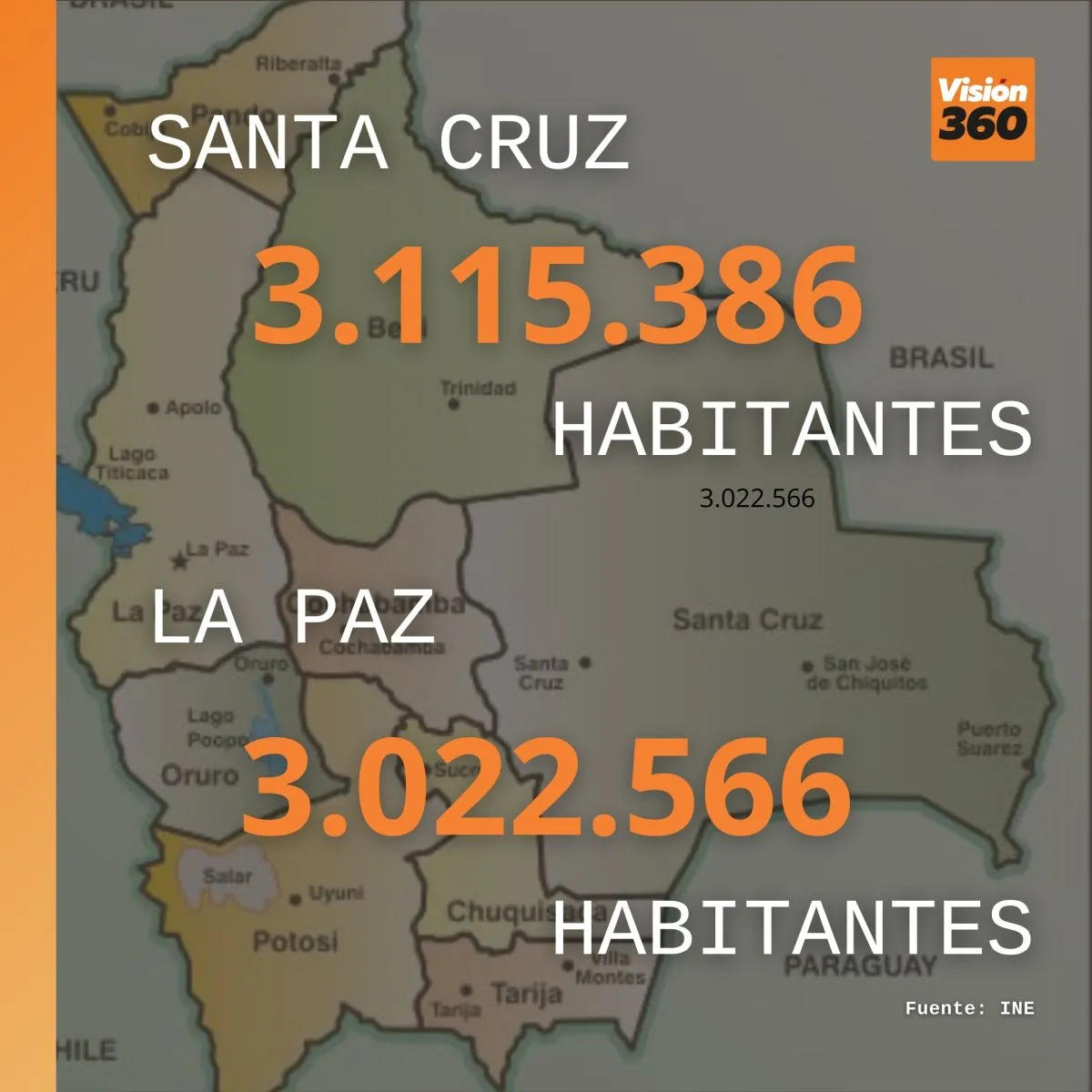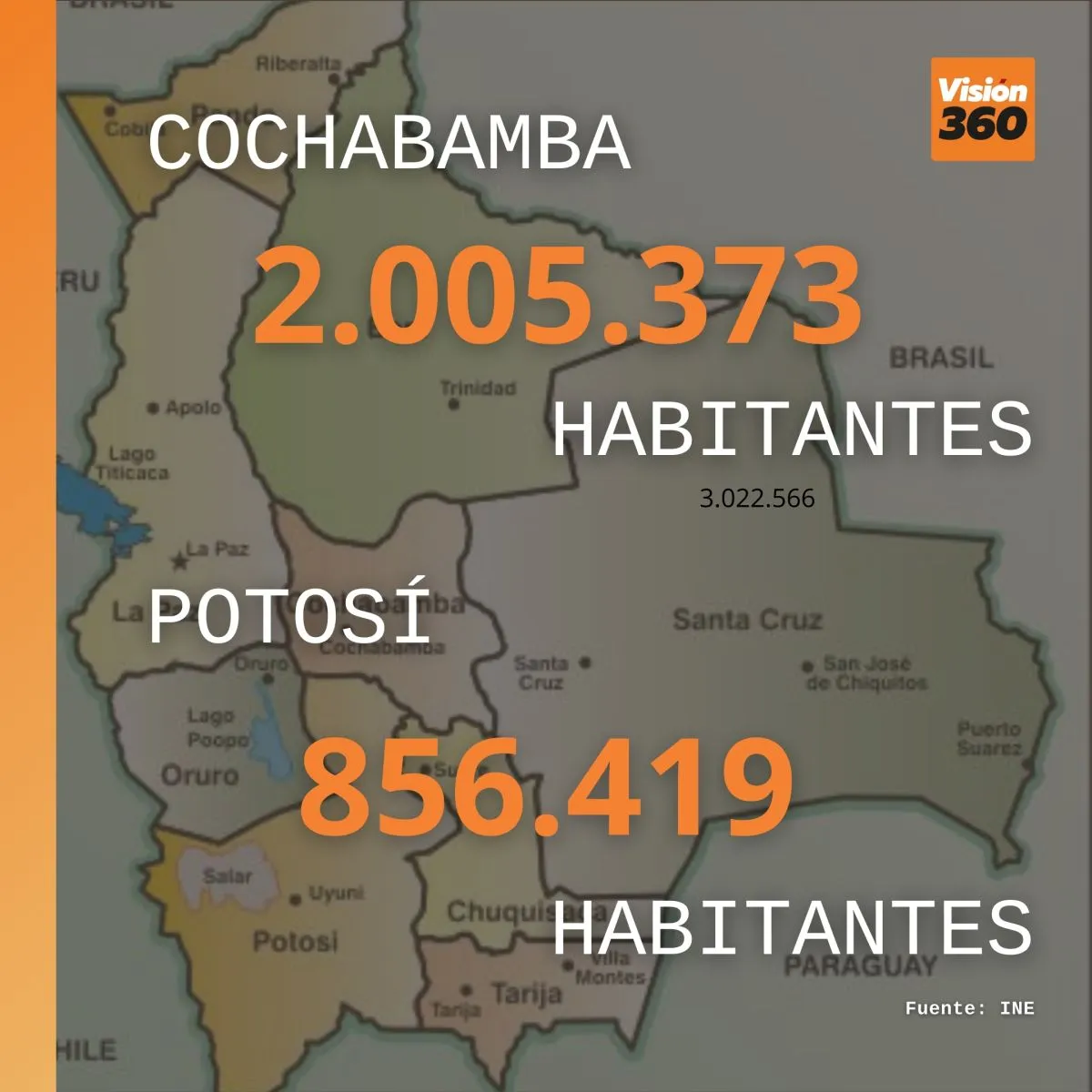 La Paz                         3.022.566 habitantes