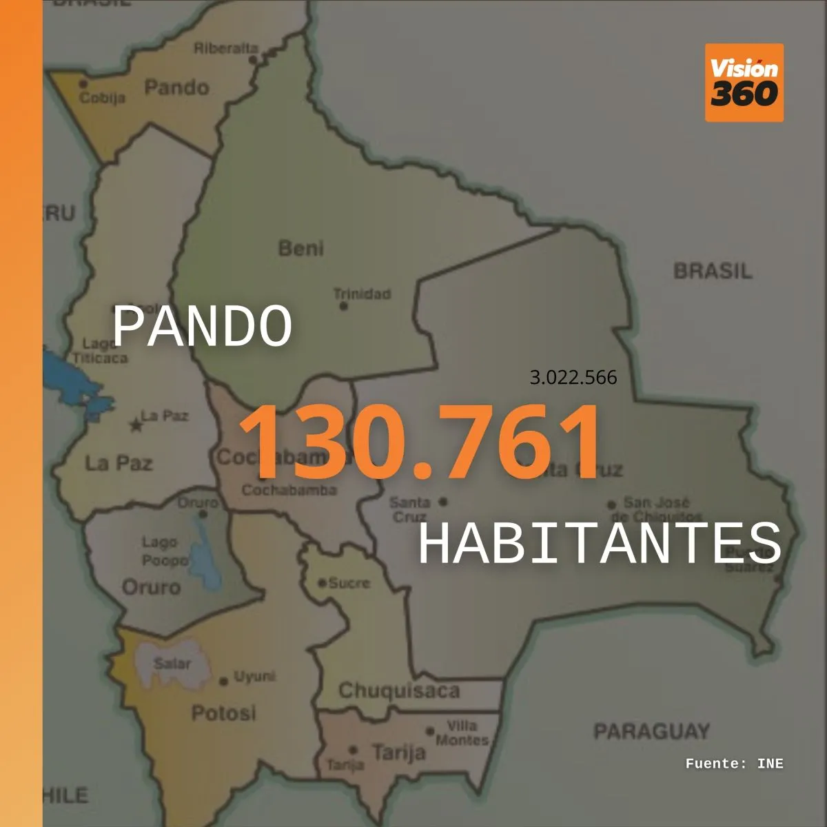 Pando                        130.761 habitantes