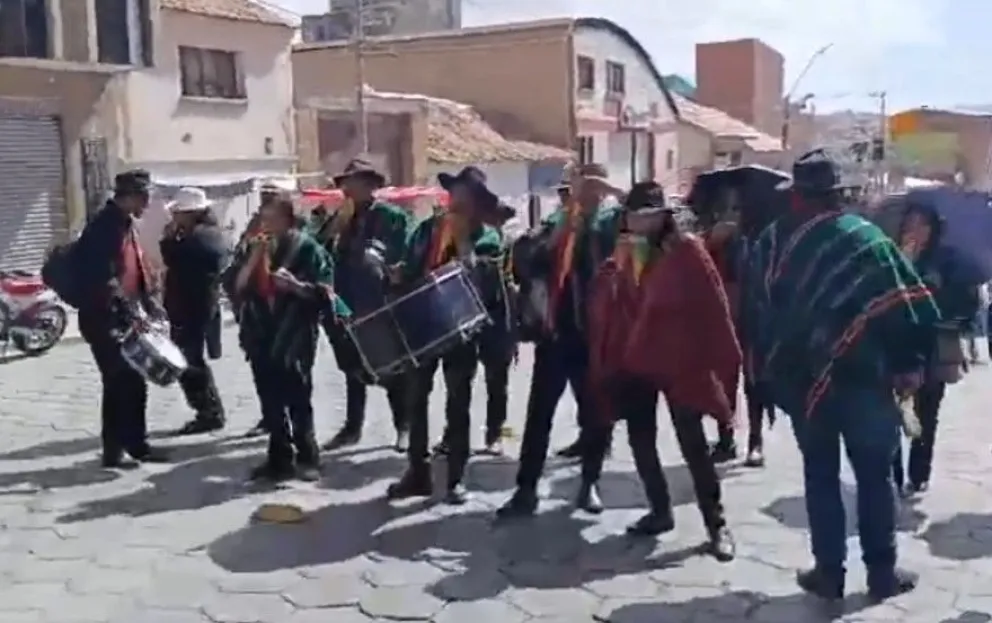 Bailes y música en las calles de la ciudad de Potosí Foto: Captura El Potosí
