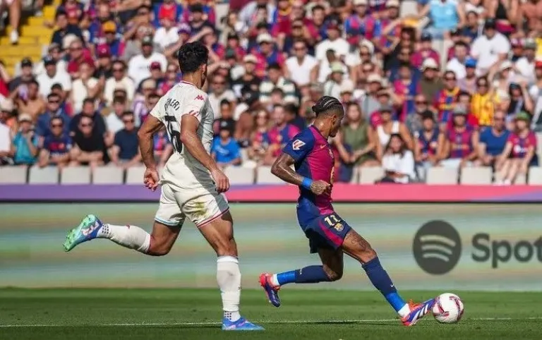 Y es que todo funcionó en el Barza. En ataque y en defensa, en lo colectivo y en lo individual. El faro fue a veces Dani Olmo, otras Lamine Yamal y lució sobre todo Raphinha, autor de un triplete, el primero de su carrera profesional.