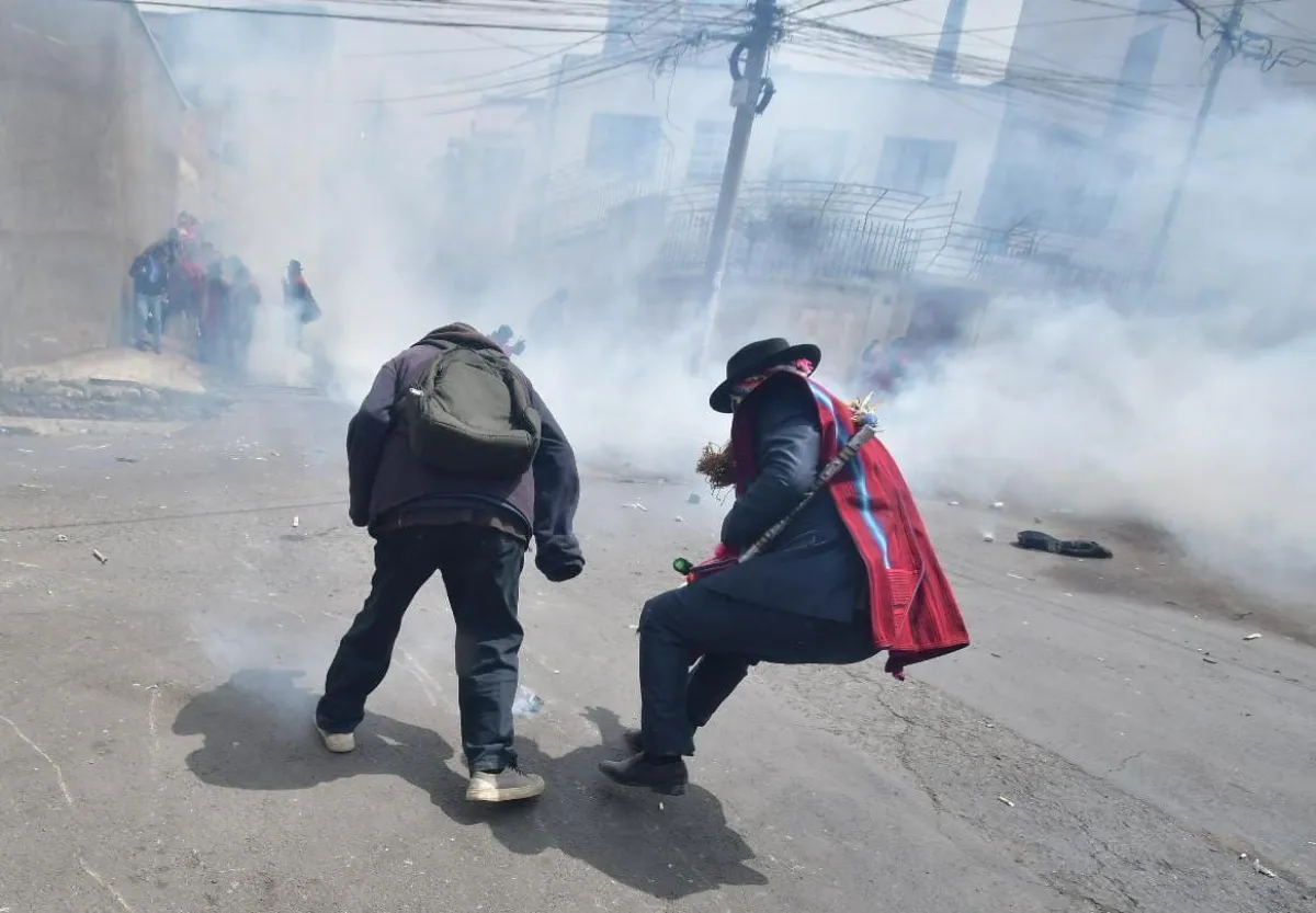 Gasifican protesta de los Ponchos Rojos en La Paz, hay dos heridos