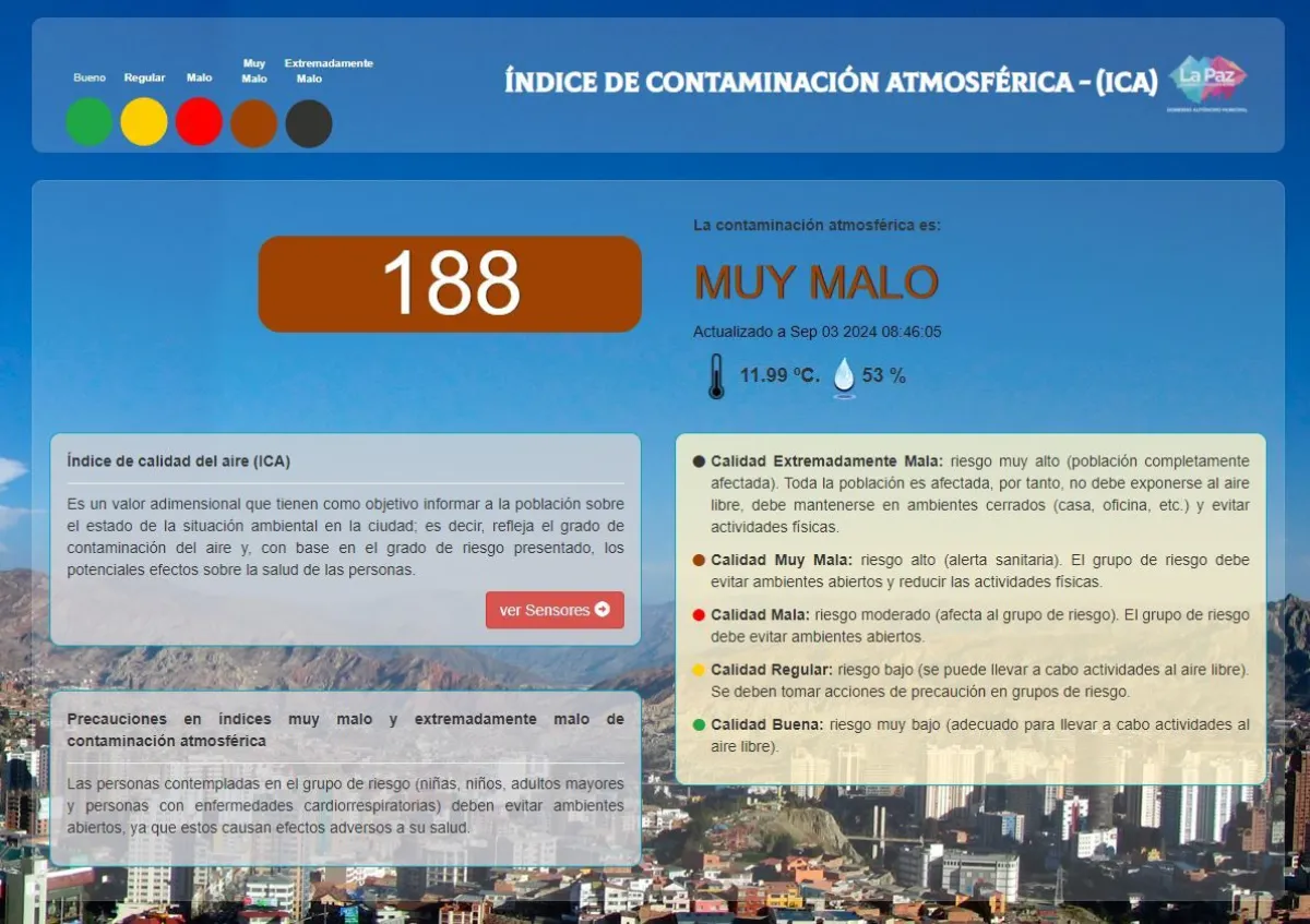 En la web, se puede acceder a esta medición en el sitio https://sim.lapaz.bo/ambiental/home/ica