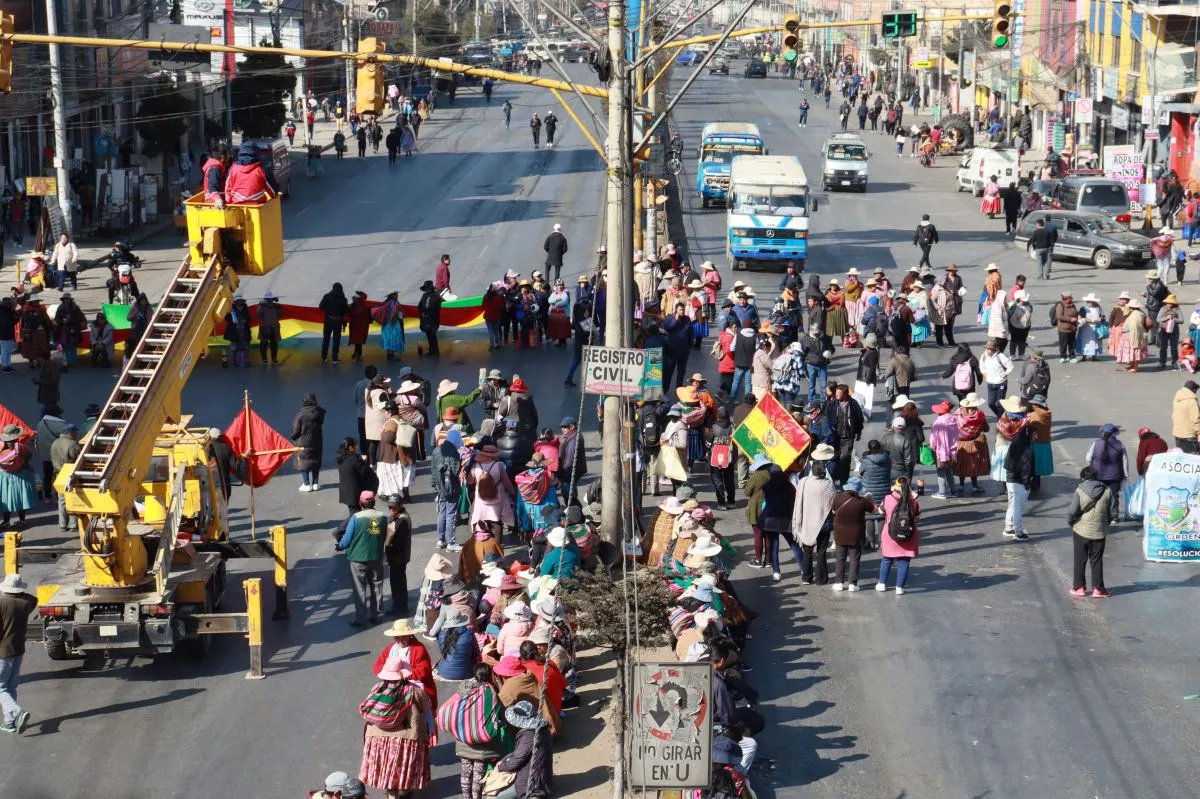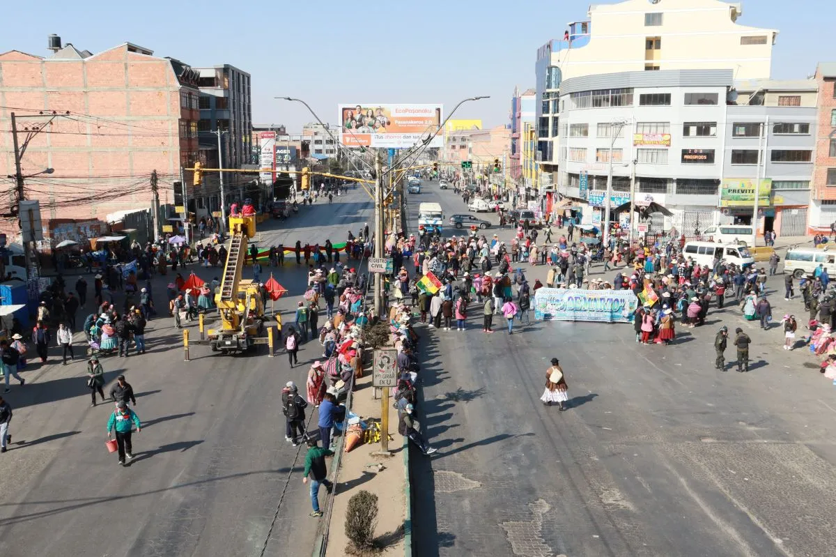 Los gremiales salieron este martes a las calles de varias zonas estratégicas de El Alto, en una protesta por el alza de los precios de la canasta familiar y la escasez de divisas y combustibles. La marcha del sector inició en la zona de la Apacheta y el destino es La Ceja. Entre tanto, hay puntos de bloqueo en distintas vías principales de la urbe alteña.