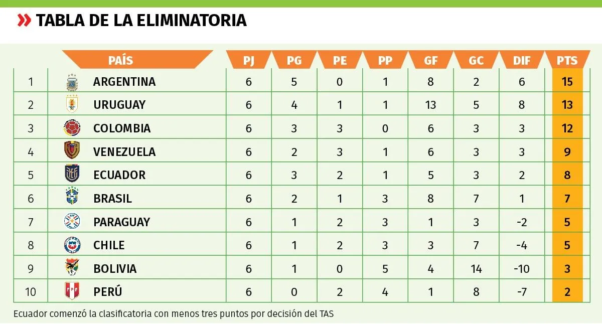 Delante del equipo boliviano se encuentran los seleccionados Chile y Paraguay que acumulan cinco unidades, pero en la jornada que comienza este jueves, ambos jugarán en condición de visitante.
