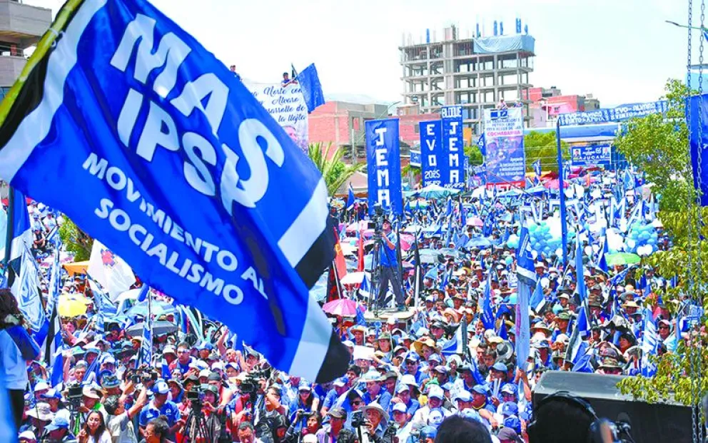 Decenas de militantes en una de las concentraciones anteriores del Movimiento Al Socialismo (MAS). Foto: ABI