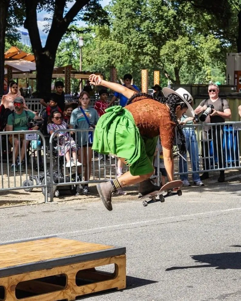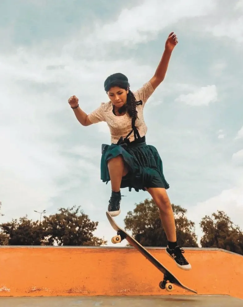Con pollera y sombrero las Imilla Skate desafían la gravedad