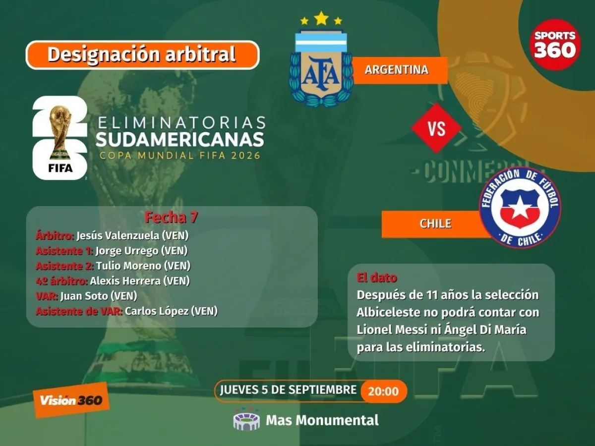 Argentina, reciente campeón de América y líder en las eliminatorias sudamericanas, recibe este jueves (20.00 de Bolivia) a Chile, que necesita sumar puntos para acercarse a los puestos de clasificación al Mundial 2026 y levantar cabeza tras su temprana eliminación del torneo continental.