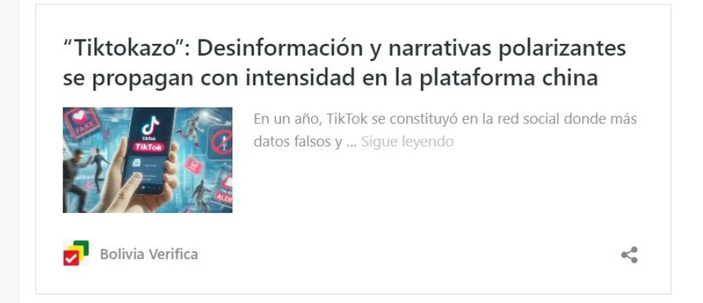 En ese mes, Bolivia Verifica presentó un reportaje sobre cómo los desinformantes se sirven de esta plataforma para compartir videos falsos y contenidos polarizantes.