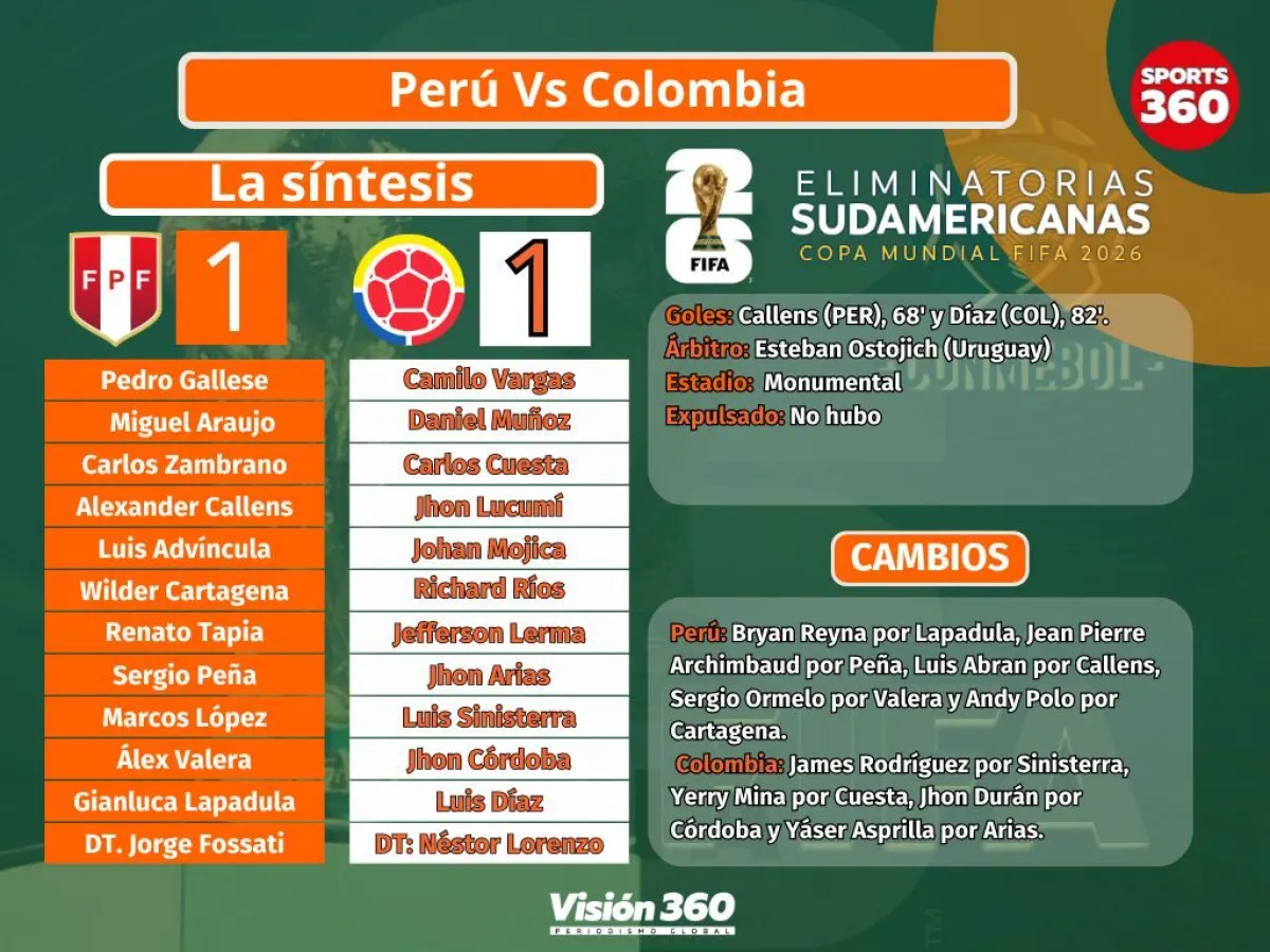Sin embargo, a los 83 minutos, Díaz empató de cabeza, tras un tiro de esquina de Rodríguez, y lograr sumar un punto en Lima.