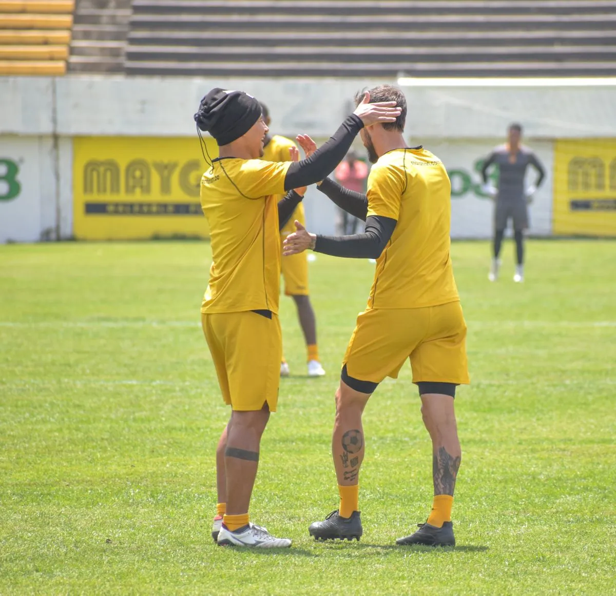 Michael Ortega (izq.) felicita a Luciano Ursino, autor del segundo gol del Tigre. Foto: The Strongest.