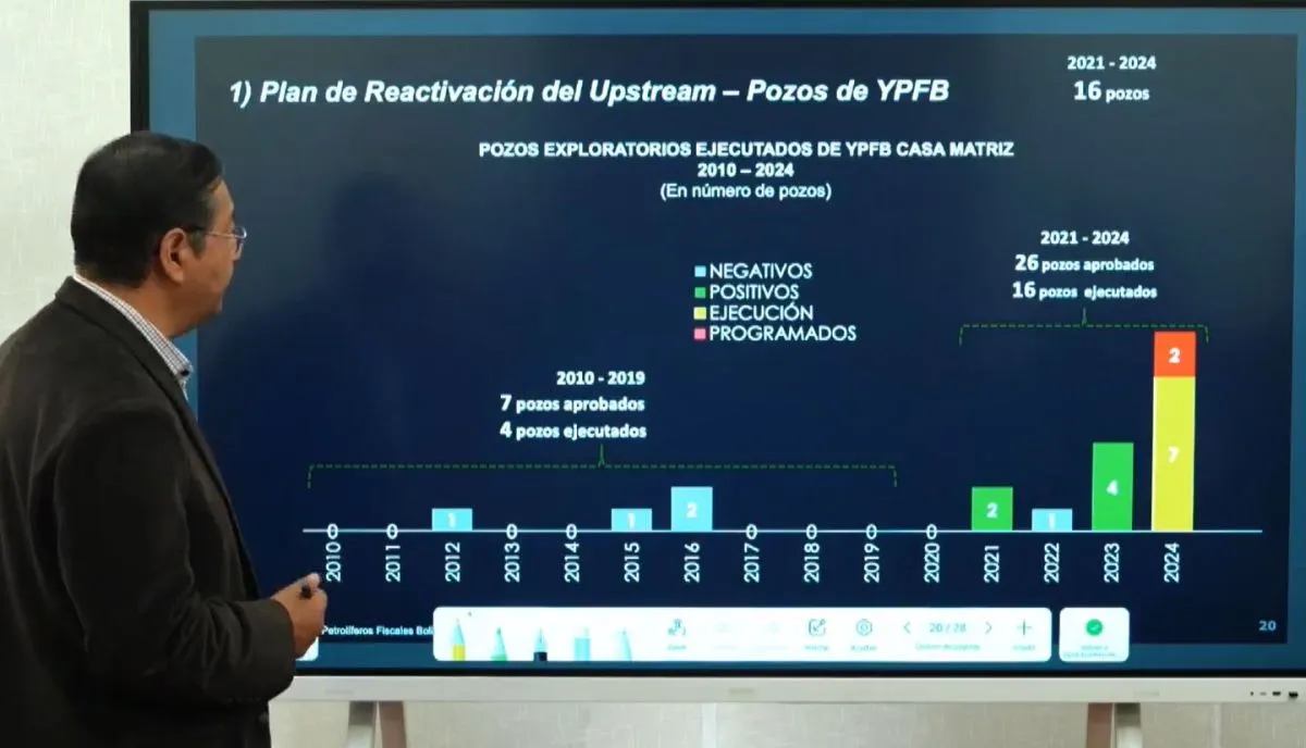 Ejecutivo dice que en cuatro años de mandato se hallaron seis pozos positivos, frente a cero en la gestión 2010 y 2019 de Evo