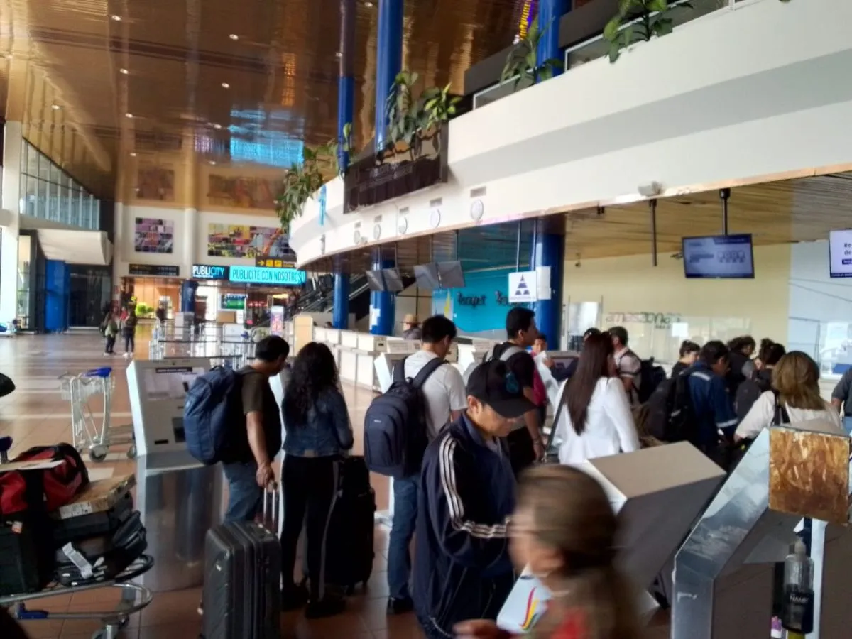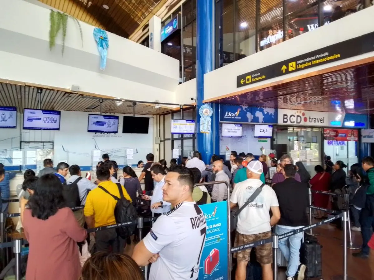 Pasajeros hacen fila en el aeropuerto de Cochabamba, este lunes. Foto: Visión 360
