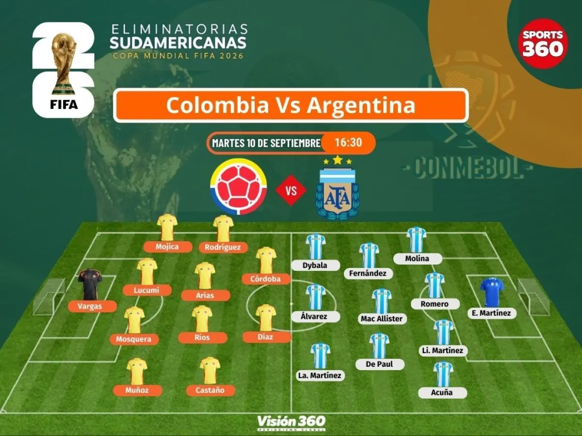 También se espera que ante Argentina sea titular James Rodríguez, que jugó el segundo tiempo contra Perú y le cambió la cara al equipo, mientras que las buenas sensaciones que dejaron ante la Blanquirroja los jóvenes Jhon Durán, del Aston Villa, y Yasser Asprilla, del Girona, les pueden abrir un espacio en el once inicial.