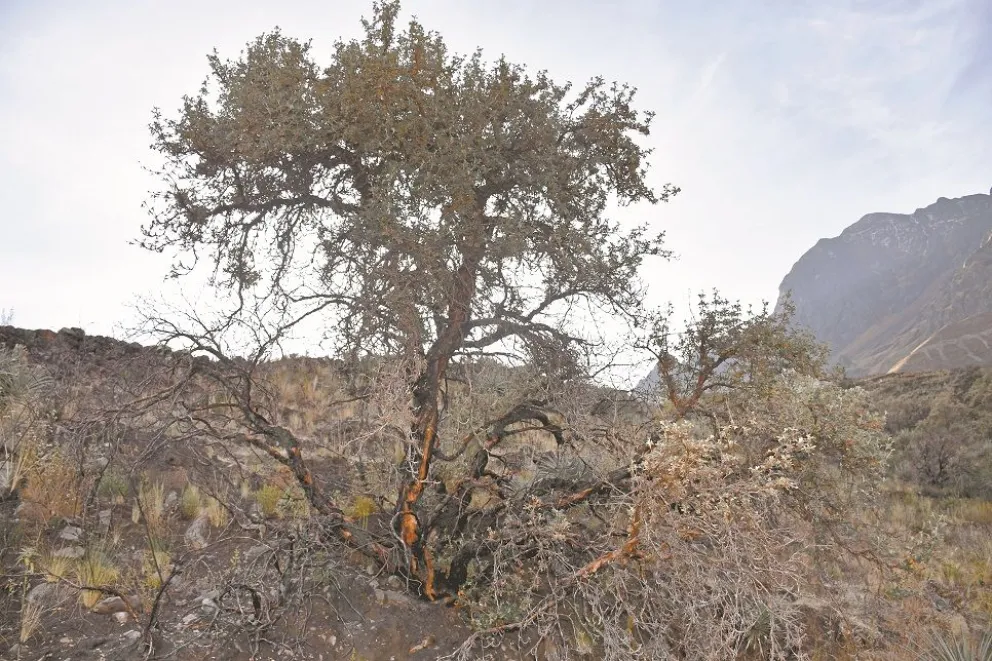 En años pasados, el fuego fue uno de los factores que más daño hizo a las queñuas del lugar. Visión 360 pudo verificar cómo algunas, las más jóvenes, quedaron como esqueletos oscuros, clavadas en medio de las montañas nubladas. En torno a ellas ya creció nueva vegetación y hay pequeñas plantas luchadoras rodeándolas.