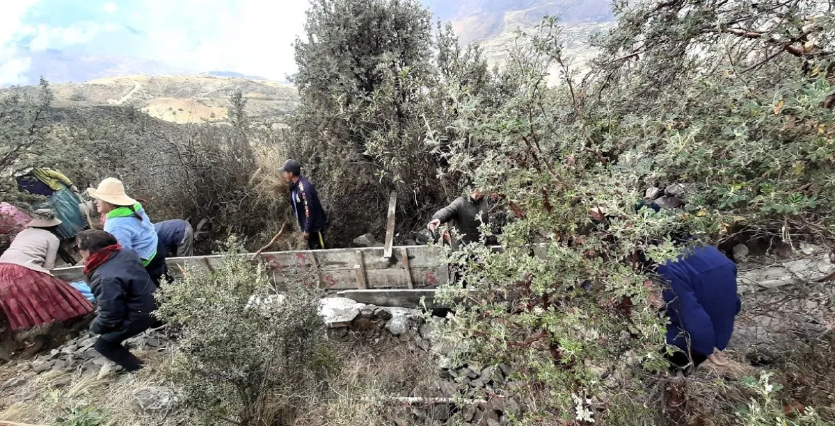 Comunerios trabajan en la construcción de un canal, en el Illimani. Foto: Mirna Echave / Visión 360