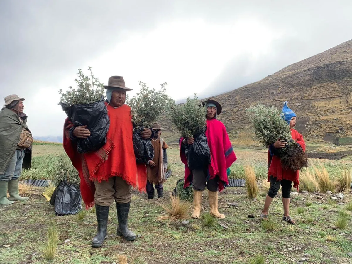 Comunarios de Collpa llevan sus plantas para reforestar. Foto: Fundación Armonía