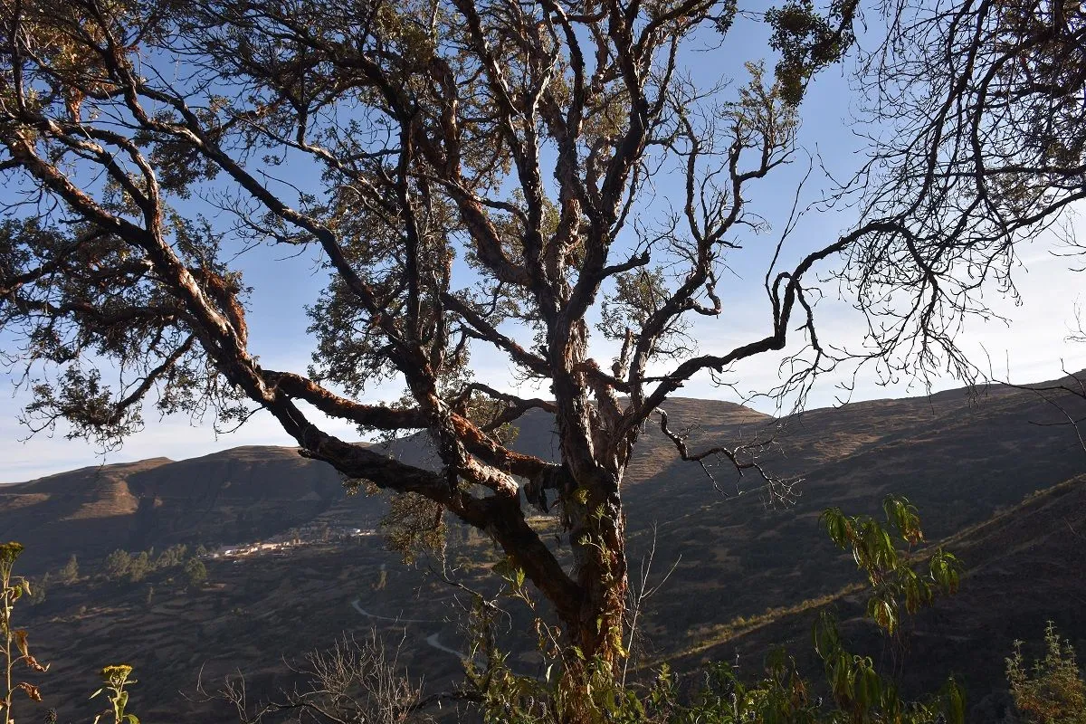 La queñua y, al fondo, la población de Cayimbaya. Foto: Mirna Echave / Visión 360