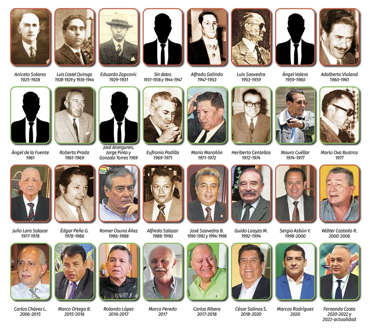 Galería de presidentes de la FBF desde su creación en 1925. Fotos: Historia del Fútbol Boliviano y redes sociales.