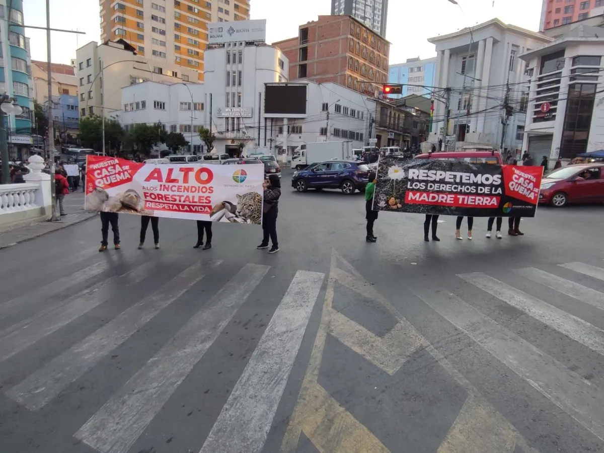 Funcionarios de la entidad defensorial comenzaron la medida en el centro paceño con pancartas que reclamaban el cese a los incendios en la Amazonia y la Chiquitania en Santa Cruz, Beni y Pando. Piden además tomar acciones preventivas para evitar estos desastres y la abrogación del paquete de leyes “incendiarias”.