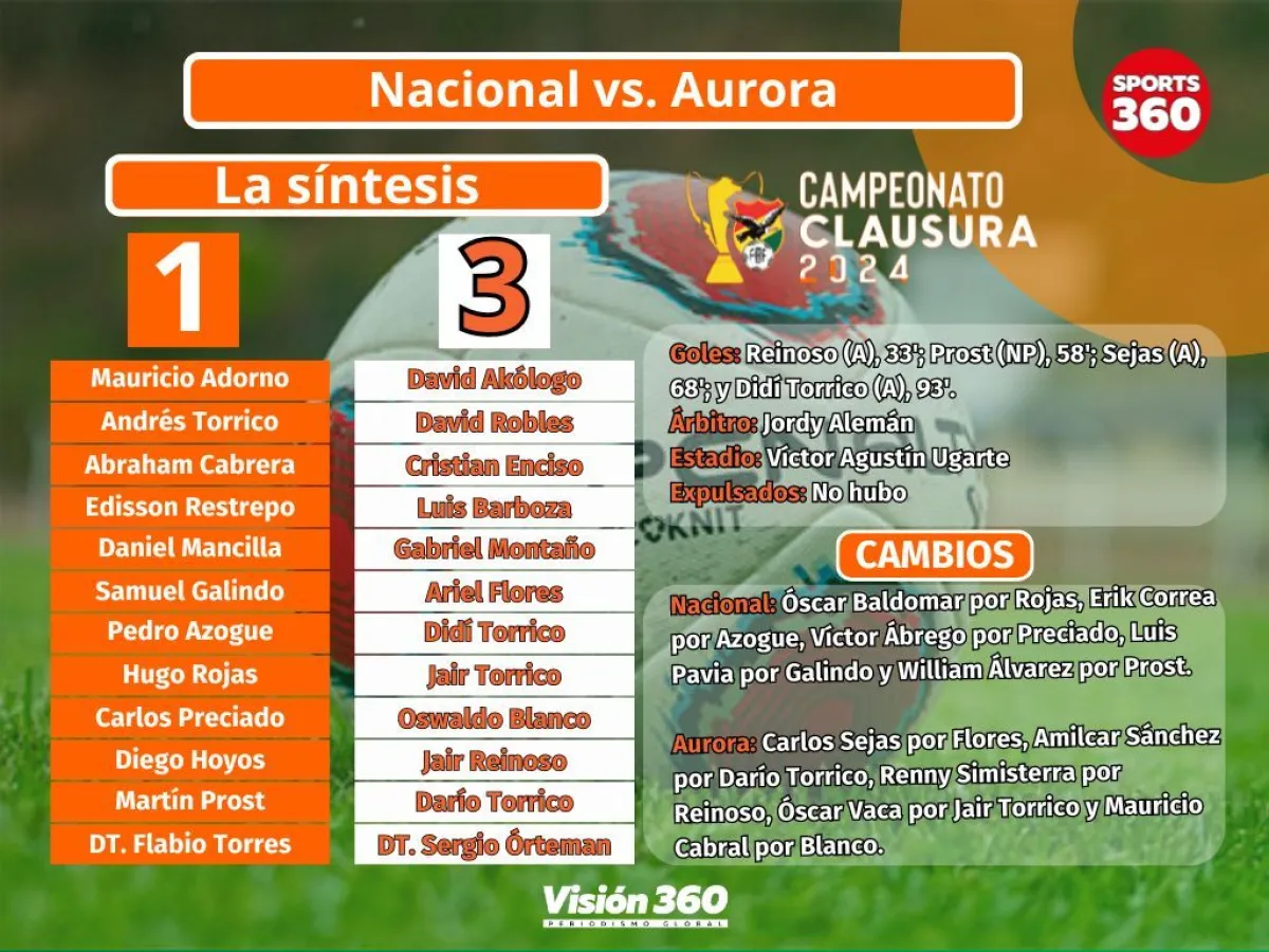 Aurora se impone en Potosí sobre Nacional y amplía su racha a seis partidos al hilo sin perder