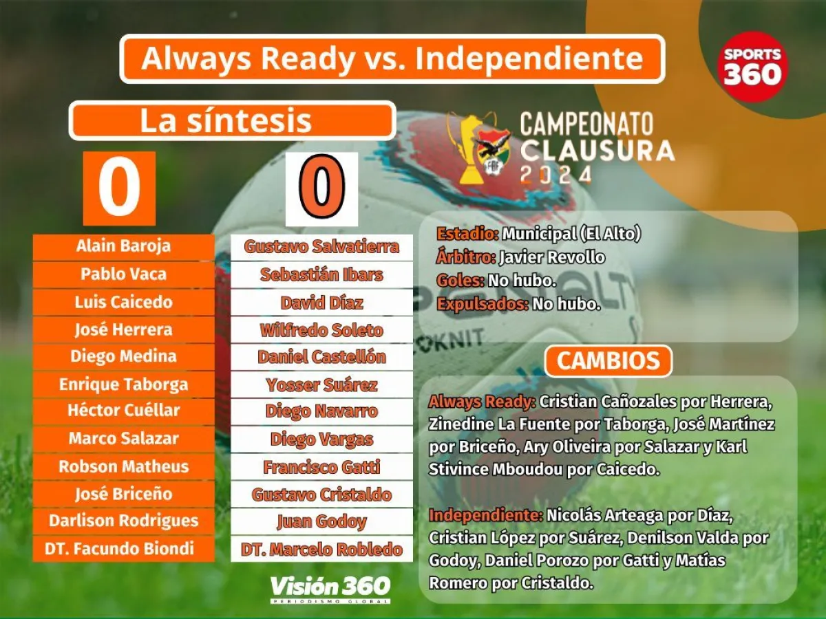 Always Ready volvió a perder puntos de local. Solo pudo empatar con Independiente de Sucre en el estadio Municipal de El Alto, partido de la jornada 14, que se jugó en la tarde de este domingo ante poca cantidad de espectadores.