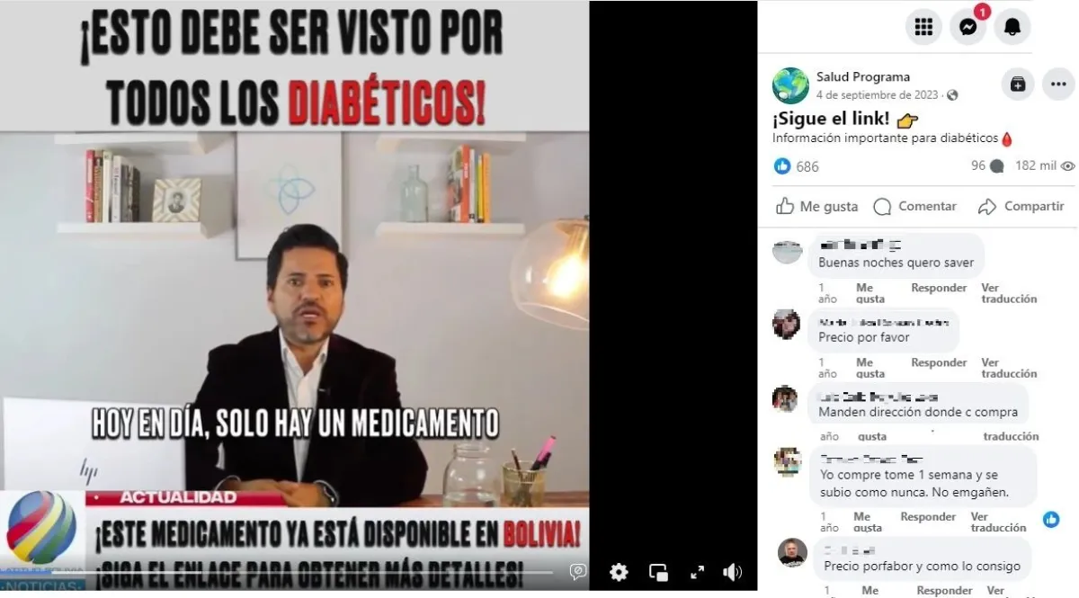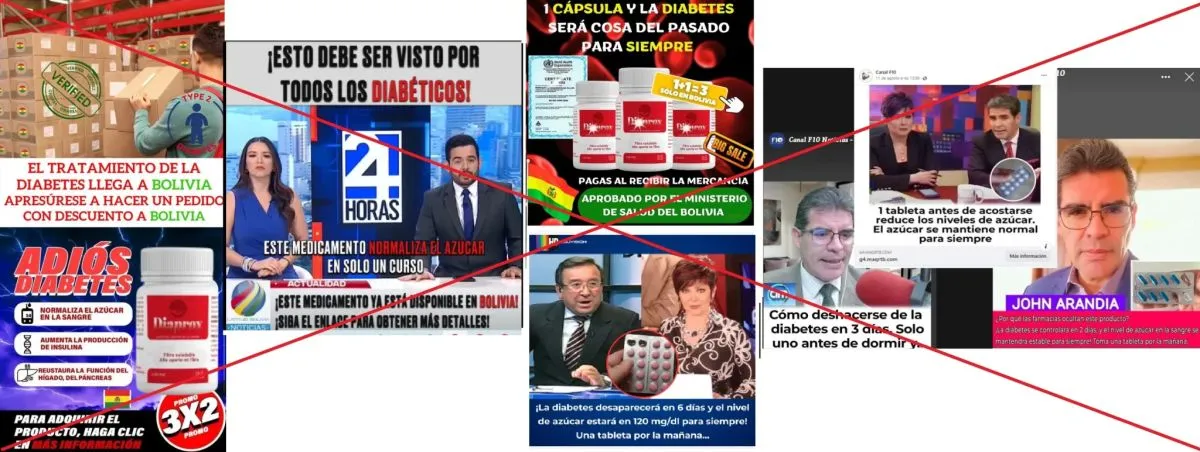 Los fármacos falsos no solo son contra la diabetes, también promocionan otros para problemas como la ceguera, dificultades con la próstata o articulaciones y hasta infecciones por hongos. Estas páginas operan a través de Facebook, invirtiendo en publicidad dirigida a múltiples países. El alcance de estas estafas es vasto, y la red de engaños no se detiene en fronteras: lo que comienza en Bolivia puede replicarse en cualquier parte del mundo.