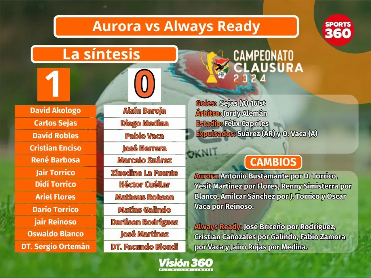 Antes de los 10 minutos, los auroristas llegaron con una media vuelta de Oswaldo Blanco y un cabezazo de Jair Reinoso. El local se movió bajo la batuta de Darío Torrico que se volvió incontrolable para sus marcadores.