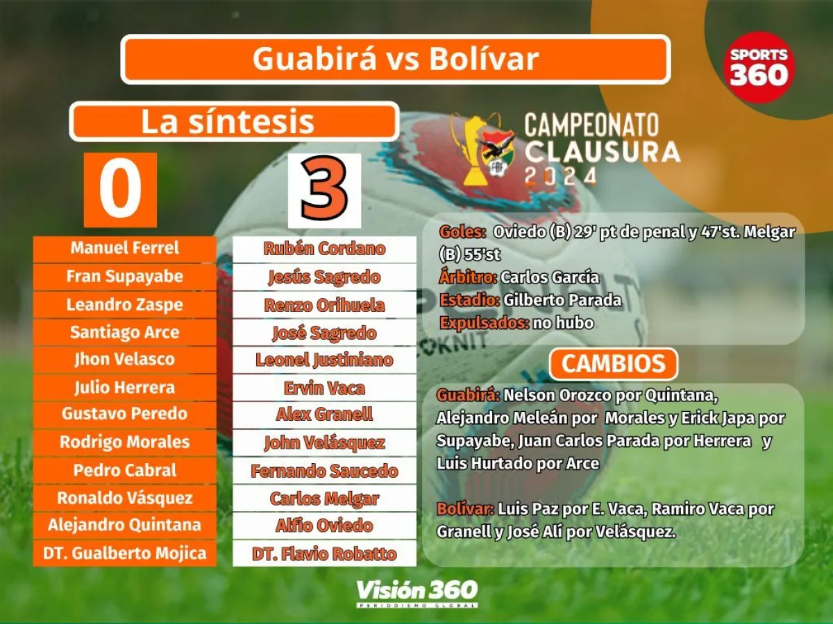 Bolívar ganó la primera rueda del certamen al derrotar este domingo a Guabira por 3-0 en el estadio Gilberto Parada de Montero.  Con el triunfo los académicos sumaron 34 puntos en la primera vuelta, puntaje que no podrá ser superado por ningún equipo.