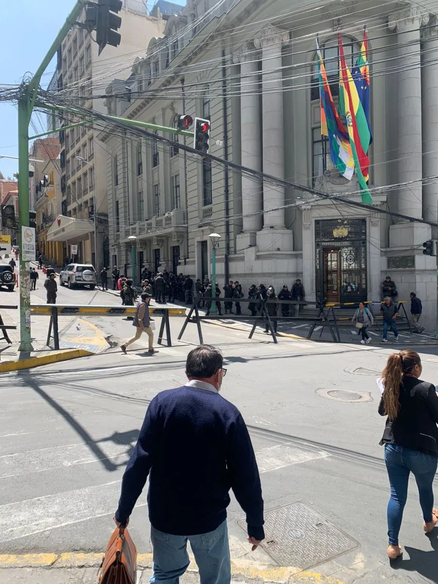 Los accesos a la Plaza Murillo fueron cerrados con vallas.
