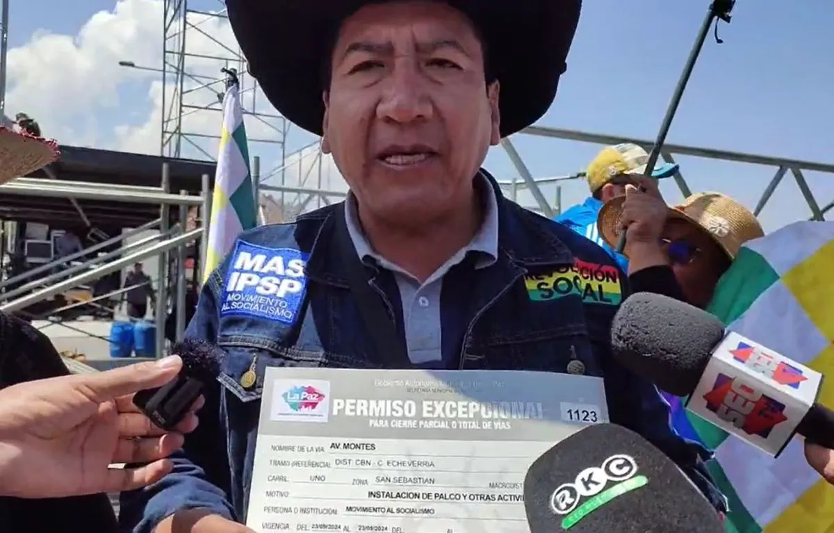 Freddy Mamani muestra la autorización de la Alcaldía de La Paz para que la marcha se concentre en la Cervecería. Foto: Captura de video